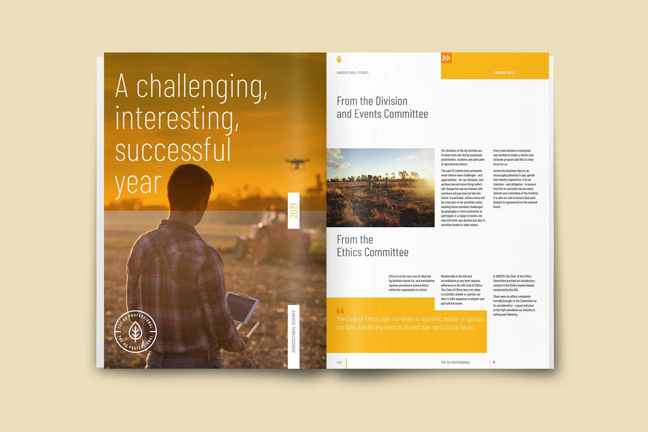 Imagination designed their annual journal The Ag Professional. The journal spans over 100 pages and includes reports from various committees, industry awards, insights from across the sector as well as a detailed section dedicated to agricultural science.